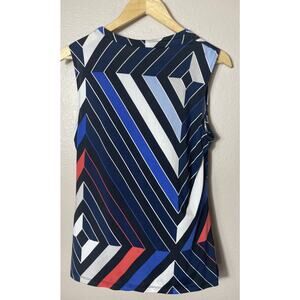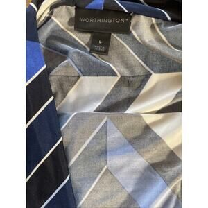 Worthington Women Top L Career Blouse Cowl Neck Striped Geometric Pattern. No stains, tears or holes. Measurements in photos.