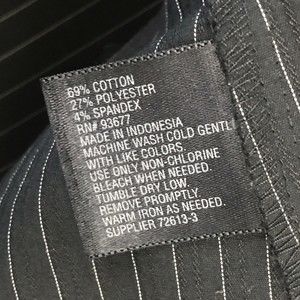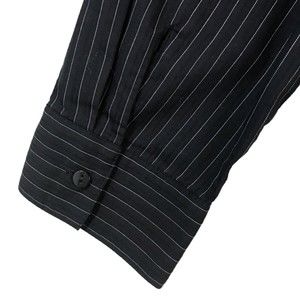 Please check out the pictures for details. Cotton 69%, Polyester 27%, Spandex 4% Colors may appear slightly different on the screen due to light. This shirt is black with thin stripes.