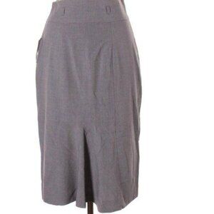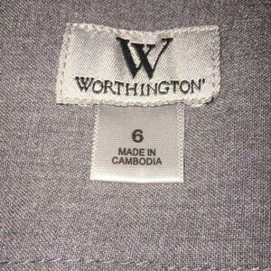 This Worthington Women's Midi Pencil Skirt is a chic, gray size 6 skirt. It's made from a blend of polyester, rayon, and spandex, featuring a side zip and back kick pleat for added style and comfort.