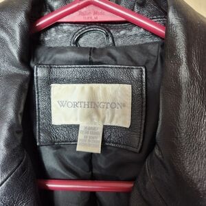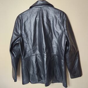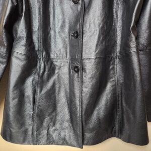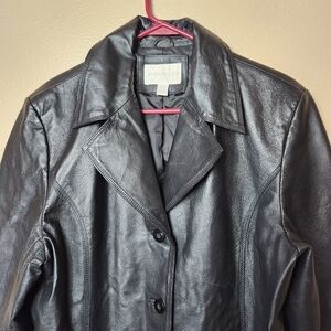 Worthington Womens Black Leather Notch Collar Buttonfront Jacket-Size XL