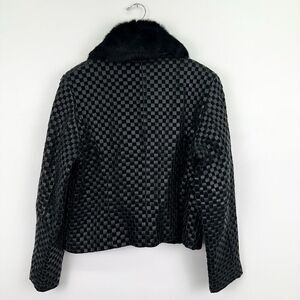 Worthington Women’s Black Woven Leather Removable Rabbit Fur Trim Collar Zip Jacket