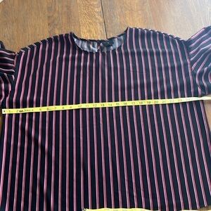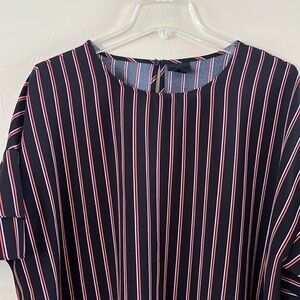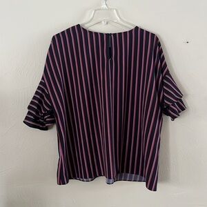 Worthington Women’s Blouse Flutter Sleeves Relax Fit Black Pink Stripes Size 0X (XL)