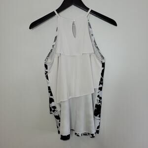 Worthington Womens Blouse Top M Halter Black White Floral Tiered