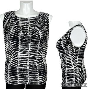 Black Gray Stretchy Sleeveless Drape Neck Pullover Blouse Top Worthington