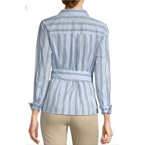Worthington Womens Blue Striped Tie Waist Blouse Size Small.