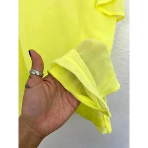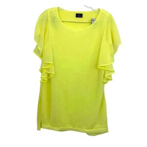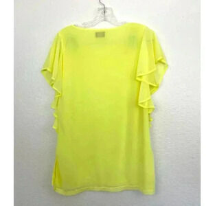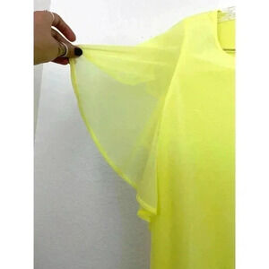 Worthington Women's Bright Yellow Sheer Top Sz Small Ruffle Sleeves