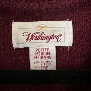 Worthington Women’s Burgundy Boucle Cardigan Polo Sweater - Medium Petite