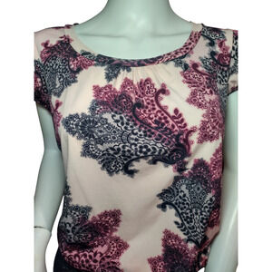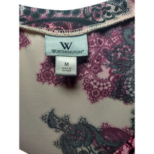 Worthington Womens Cap Sleeve Scoop neck Floral Blouse Pink Size Medium