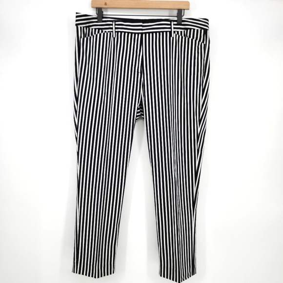 Worthington Womens Cotton Pant Size 16 Black White Bold Stripe Ankle Career Work