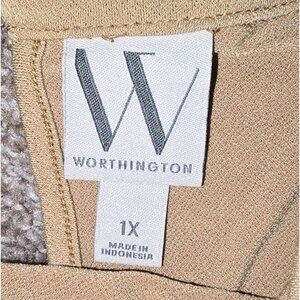 Worthington Womens Cowl Neck Sleeveless Blouse 1X Tan Polyester Blend