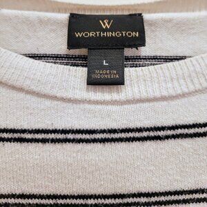Worthington Womens CrewNeck Long Sleeve Sweater Used Large White/Black Stripe