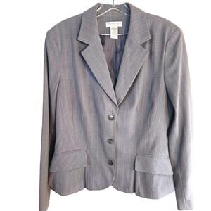 Worthington Women's Gray Stripped Blazer 14 Suit Coat Misses Sz Large L 3 Button