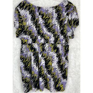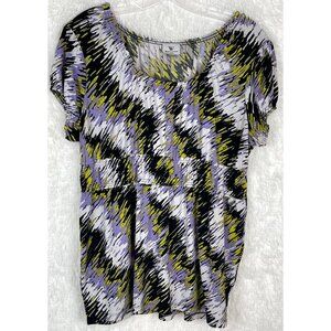 Worthington Womens Large Purple Black Yellow White ZigZag Elastic Short Sleeve