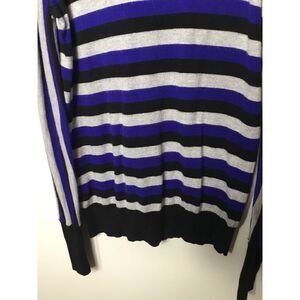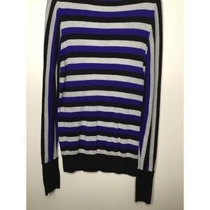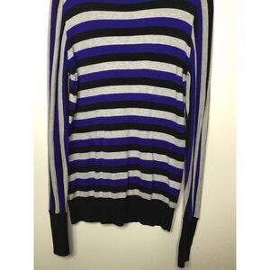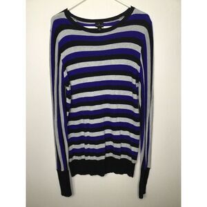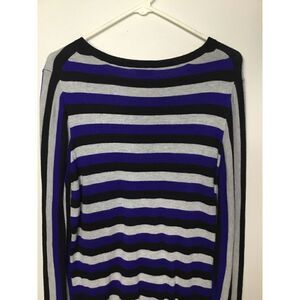 Worthington Gray, Black, Blue Striped Long Sleeve Sweater Shirt Soft Large (LT).