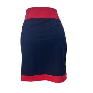 This Worthington women’s colorblock pencil skirt combines bold multicolor design with a flattering silhouette. Crafted from a blend of polyester, rayon, and spandex, it is both structured and comfortable. The size 12 skirt features a high-waist style and is in excellent used condition with no flaws or defects.