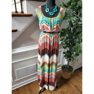 Worthington Women's Multicolor Polyester Scoop Neck Sleeveless Long Maxi Dress L