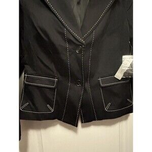 Worthington Women's Notch Lapel Blazer Jacket Black Size 14 NWT White Stitching