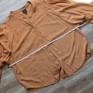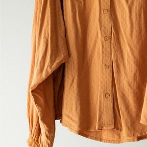 Chic orange blouse with button-up front. Lightweight and stylish for versatile wear.