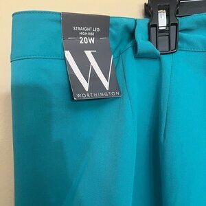 Worthington Women's High-rise, straight leg pant, wrinkle free, two side pockets, flat front, eye hook closure belt loops, New with Tags, Size 20W