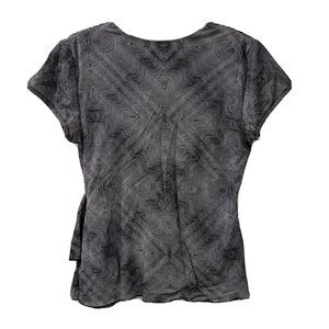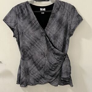 Worthington Women’s Printed Mock Wrap Blouse Top Black Gray Wht Nylon Top Sz M