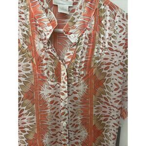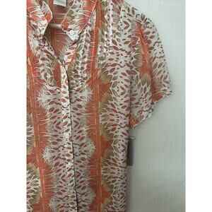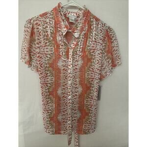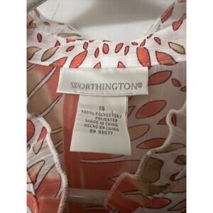 Worthington Women's Sheer Ruffle Coral Petal Stripe Blouse Tieback Size 14 NWT