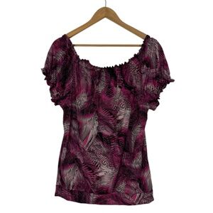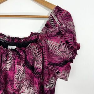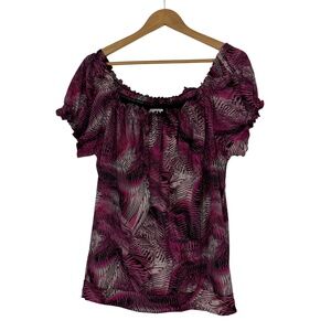Worthington Women’s Size Medium Black Pink Print Off the Shoulder Short Sleeve Blouse