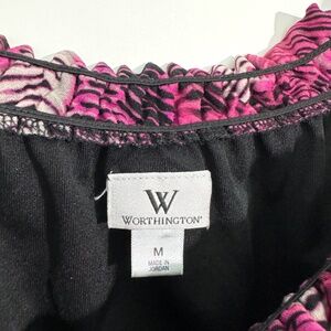 Worthington Women’s Size Medium Black Pink Print Off the Shoulder Blouse Top