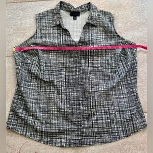 Worthington Women's Sleeveless Button-Up V-Neck Blouse – Size 2XL Plaid Collared