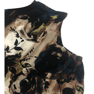 Worthington Women’s Sleeveless Crossover Blouse 1X Stretch Brown Blue Floral Top