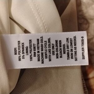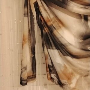 This elegant drape neck top features a stunning blend of black, brown, and cream hues. Perfect for any occasion, it offers a stylish and comfortable fit, lined, 95% polyester, 5% spandex, lining 100% polyester, NWT, MACHINE WASH COLD