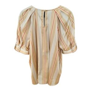 Worthington Women’s Tan/Orange/White Striped Key Hole Neck Short Sleeve Blouse size XL