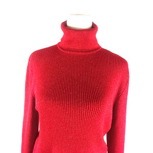 Worthington Women's Sweater Turtleneck Red Metallic Size Large Holiday
