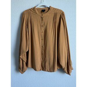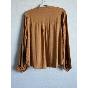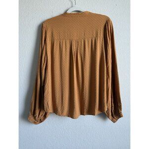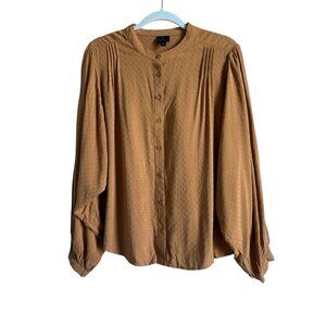 Worthington Women’s Sz Large Bell Long Sleeve Button Down Shirt Toffee NEW Boho
