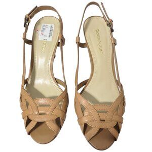 Worthington Women's Tan Slingback Strappy Heels Open Toe Classic Sz 7.5