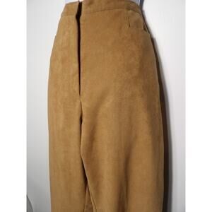 Worthington Womens Trousers Sz 12 Faux Suede Brown Pleated Hi Waist Straight Leg