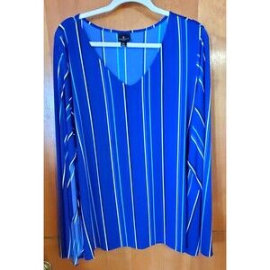 Worthington Women's Tunic 2x Blue Striped Long Slit Sleeve V-Neck Top Event Boho