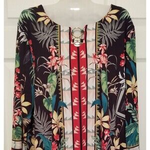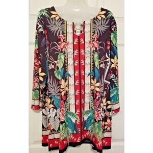 Worthington Women's Tunic Top Size XXL Tropical Multicolor Metal Neckline Accent