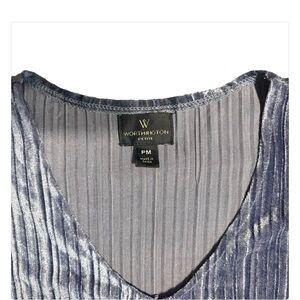 Worthington Women’s V Neck Ribbed Metallic Ruffle Sleeve Velour Top SZ PM