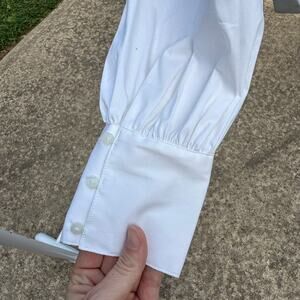 It features a classic V-neckline and long sleeves with button cuffs, making it perfect for both professional and casual settings.