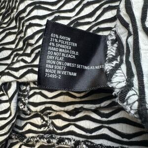 Worthington Women’s White and Black top with ruffle wave bottom.