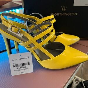 Vibrant yellow heels with sleek straps. Perfect for any occasion.