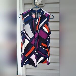 Worthington Womwns L Multicolor Sleeveless Graphic Blouse