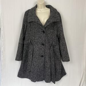 Worthington Wool Coat Womens XL Gray Tweed Belted Shawl Collar Parka Pockets