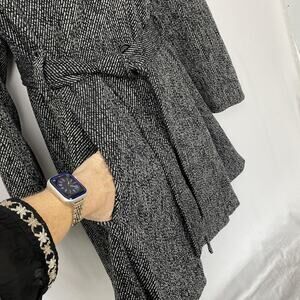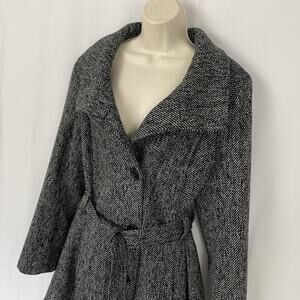 Worthington Wool Blend Coat Womens XL Gray Tweed Belted Shawl Collar Pockets