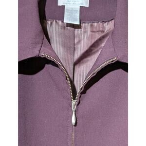 Worthington Works Stretch Separate Burgundy Fully Lined Front Zip Collar Blazer Womens Sz 18. This blazer is in excellent condition other than in the one pocket the lining in the pocket is ripped at the top (not the bottom. Can't be seen when pocket is laying flat. Measurement photos are of armpit to armpit and length.