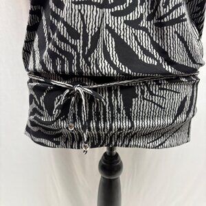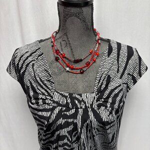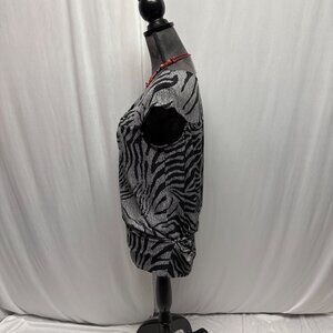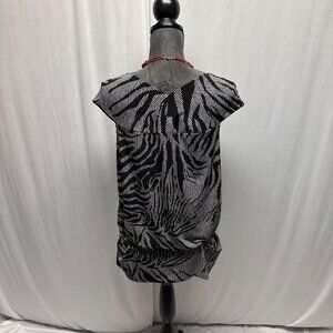 Worthington Zebra Print Stretch Top Womens Size Large Black Gray Short Sleeve