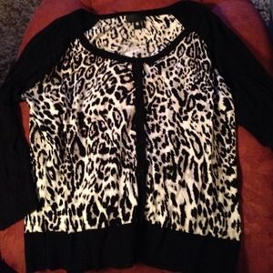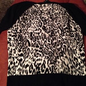 Button up sweater in black grey and white animal print in good condition washed (b12)