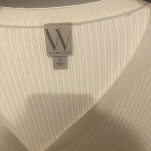 Worthington plus size sweater cream color Size 2x 25 inch length Button up front V neck New with tags