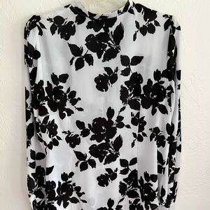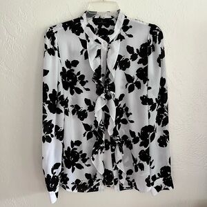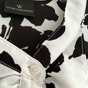 Worthington ladies long sleeve, button up, ruffle down, floral top is like new and gorgeous tucked in your favorite skirt or trousers. Size small that fits forgivingly, with lots of flow and room!