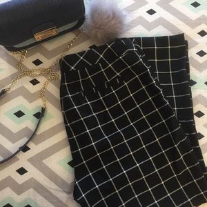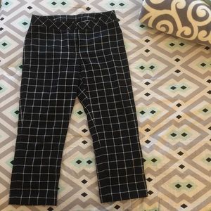 Black and white plaid Worthington Capri pants. In great condition. Have two clasps for closing the plants along with a button off to the side. No pockets on the front. There are pockets on the back. In great condition.